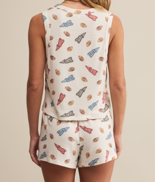 Crafted with in the softest brushed sweater knit, the Let's Go Lounge tank pairs with the matching Let's Go Lounge Short and long sleeve. Throw it on with a pair of denim shorts for daytime cheering. Fits true to size. XS-L