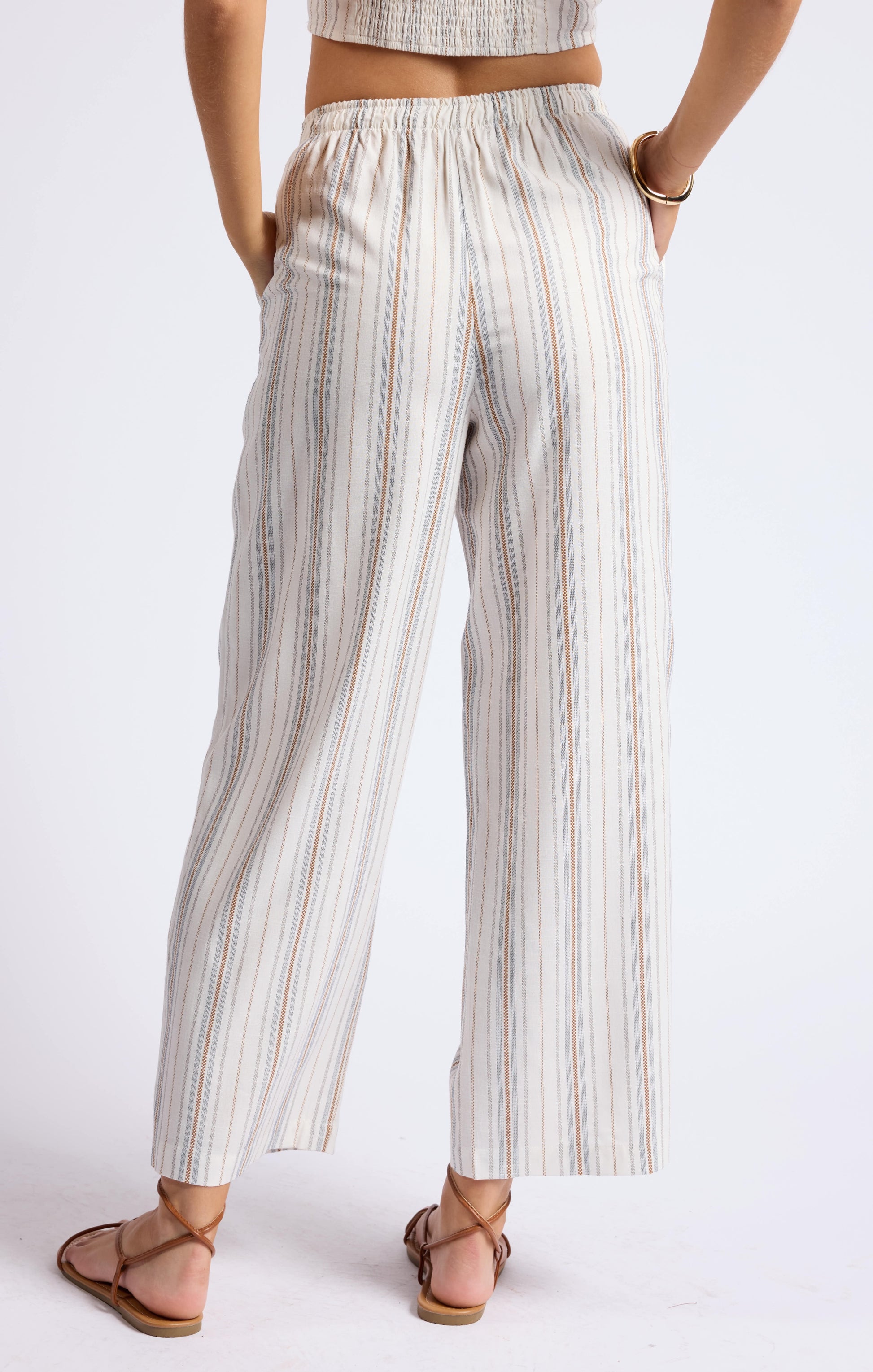 The best-selling stripe comes in a loose linen pant. Pockets and an elastic waist. Fits slightly large, size down.